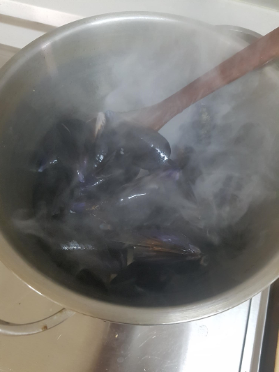 홍합을 손질 할께요.
