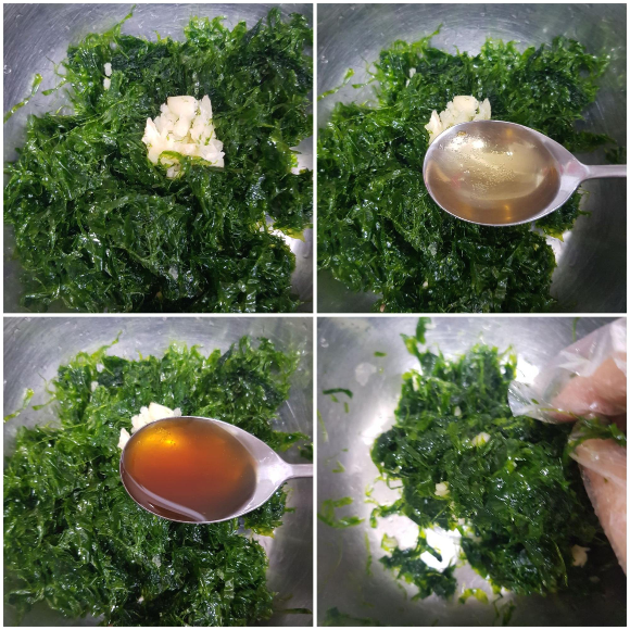 잘게 썬 파래에 마늘, 식초, 국간장 넣고