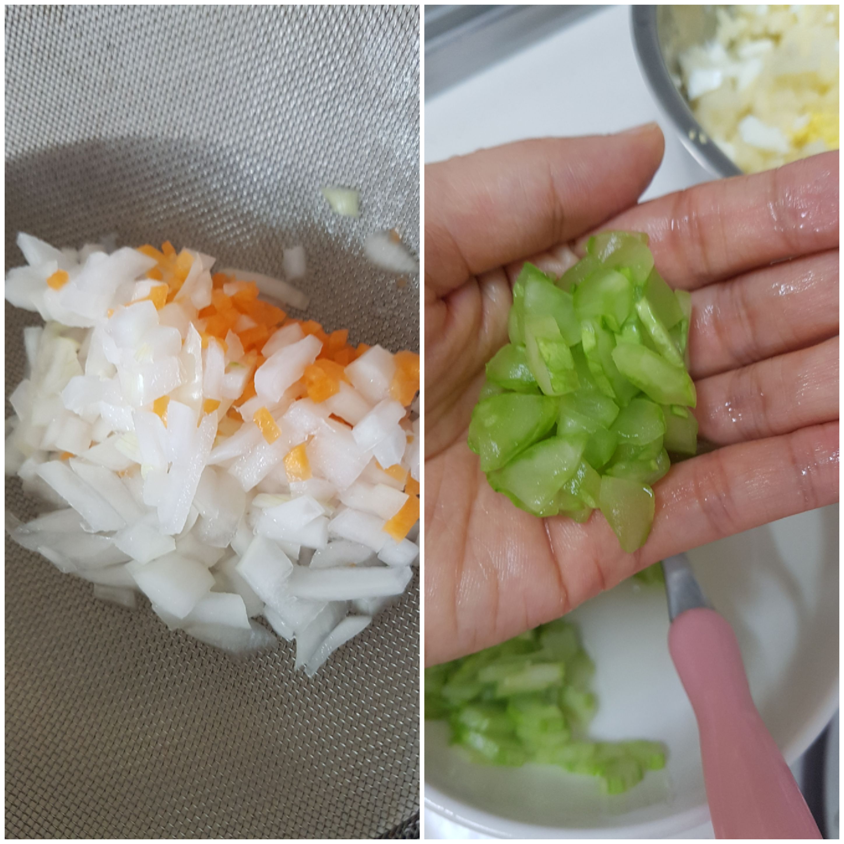 양파, 오이, 당근을 넣어서